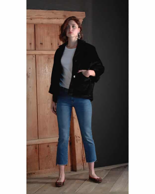 You might wear it in a whole denim look, with basic t-shirts or shirts. Ballerinas, sandals, heels, or sneakers might be an interesting choice too.