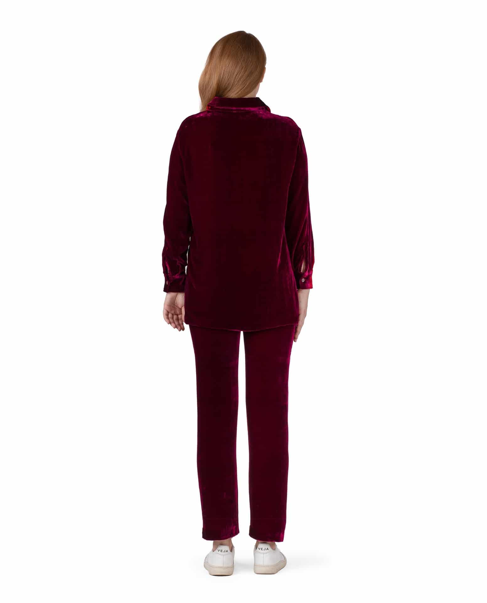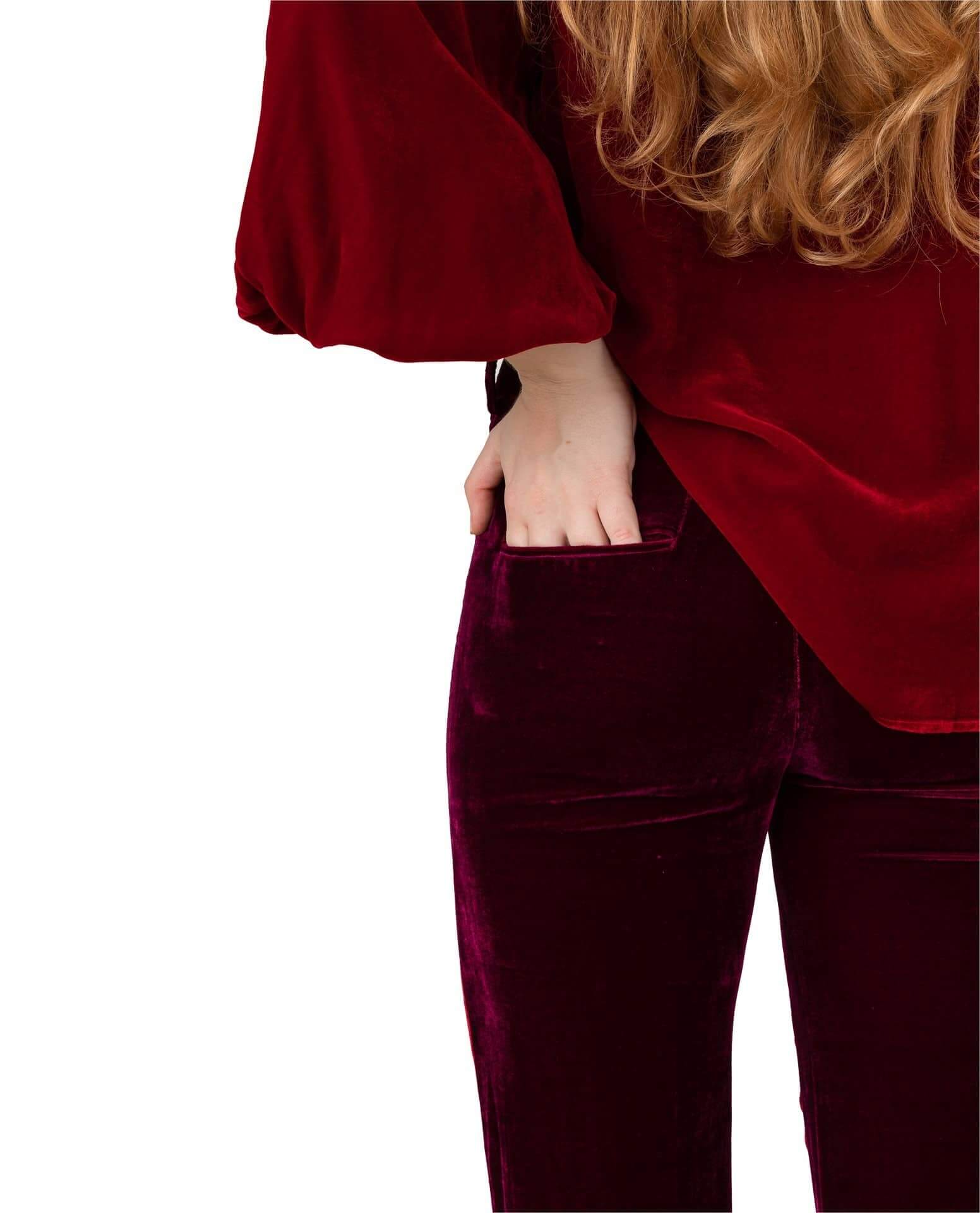 This bold item will bring back the glow to winter days with its two-tone playfulness. These straight 3/4 long trousers will probably, find their way into your wardrobe. Like a second skin, the comfort of the velvet material is outstanding.