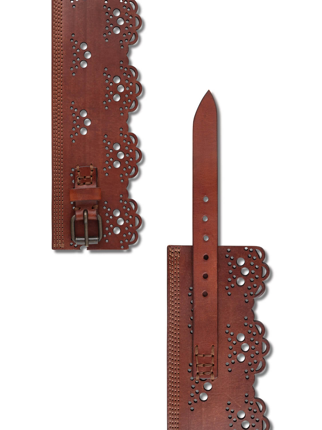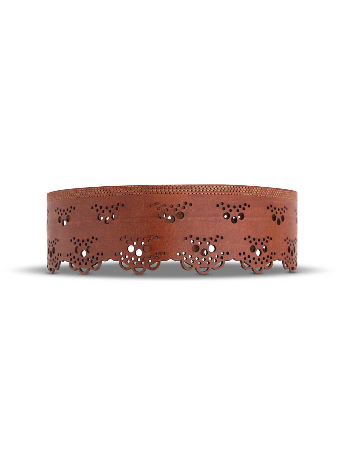 Crafted from supple, natural-tanned leather in a warm fawn shade, the Florence belt embodies exceptional artisanal work. Its laser-cut pattern and scalloped edges recall vintage lacework—where tradition meets modern refinement.