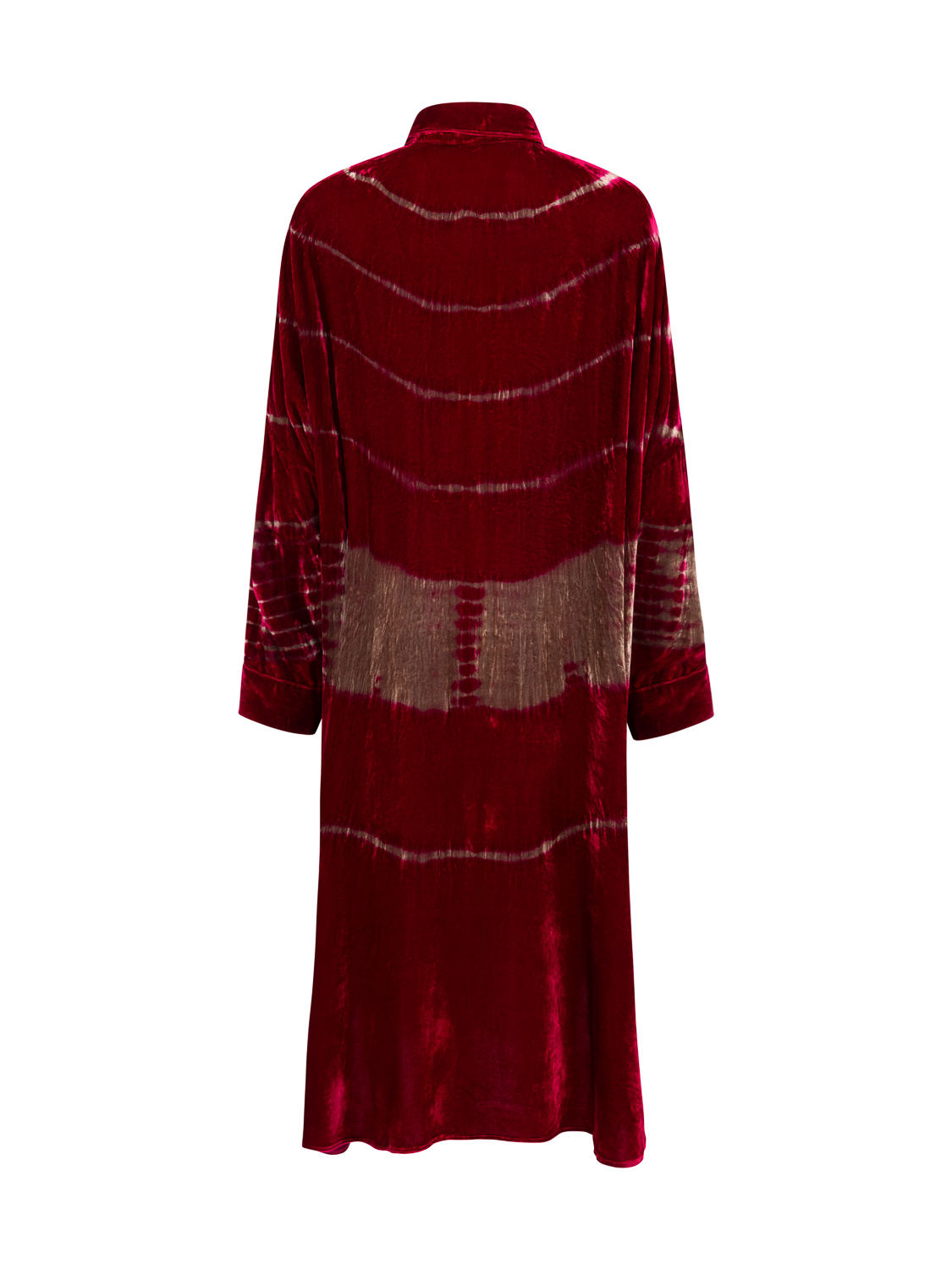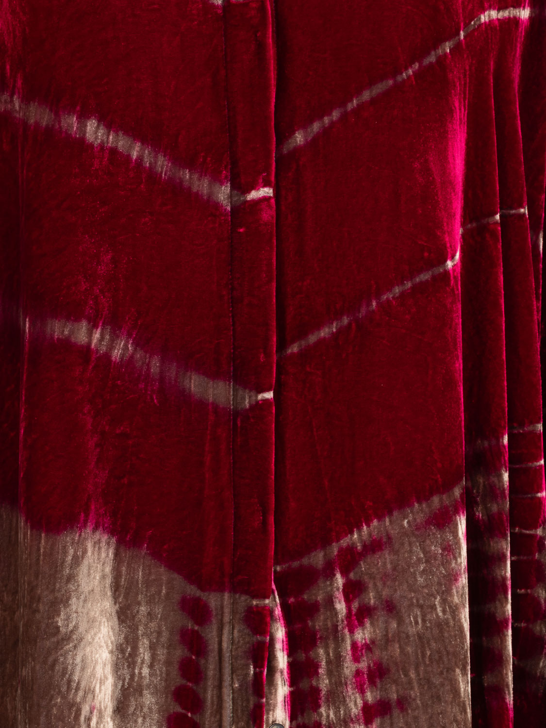 Velvet is a winter material « par excellence,» and the generous form of the piece flatters all silhouettes. The tie and dye print, very trendy this year, gives this best-seller shirt the ideal glamour note. With its touch of silk, the material is delightful to wear.