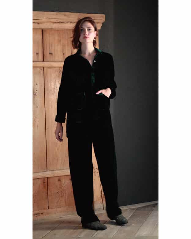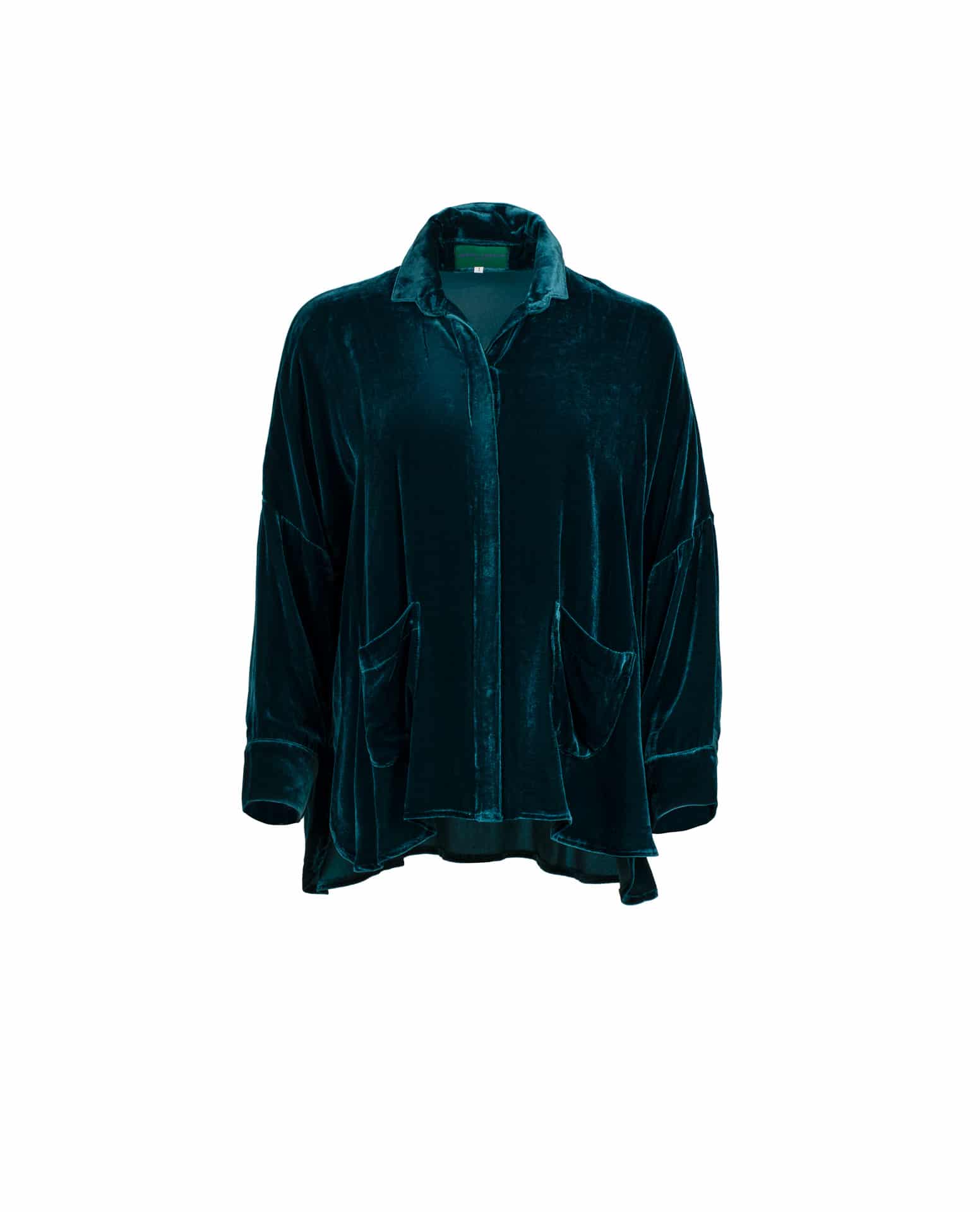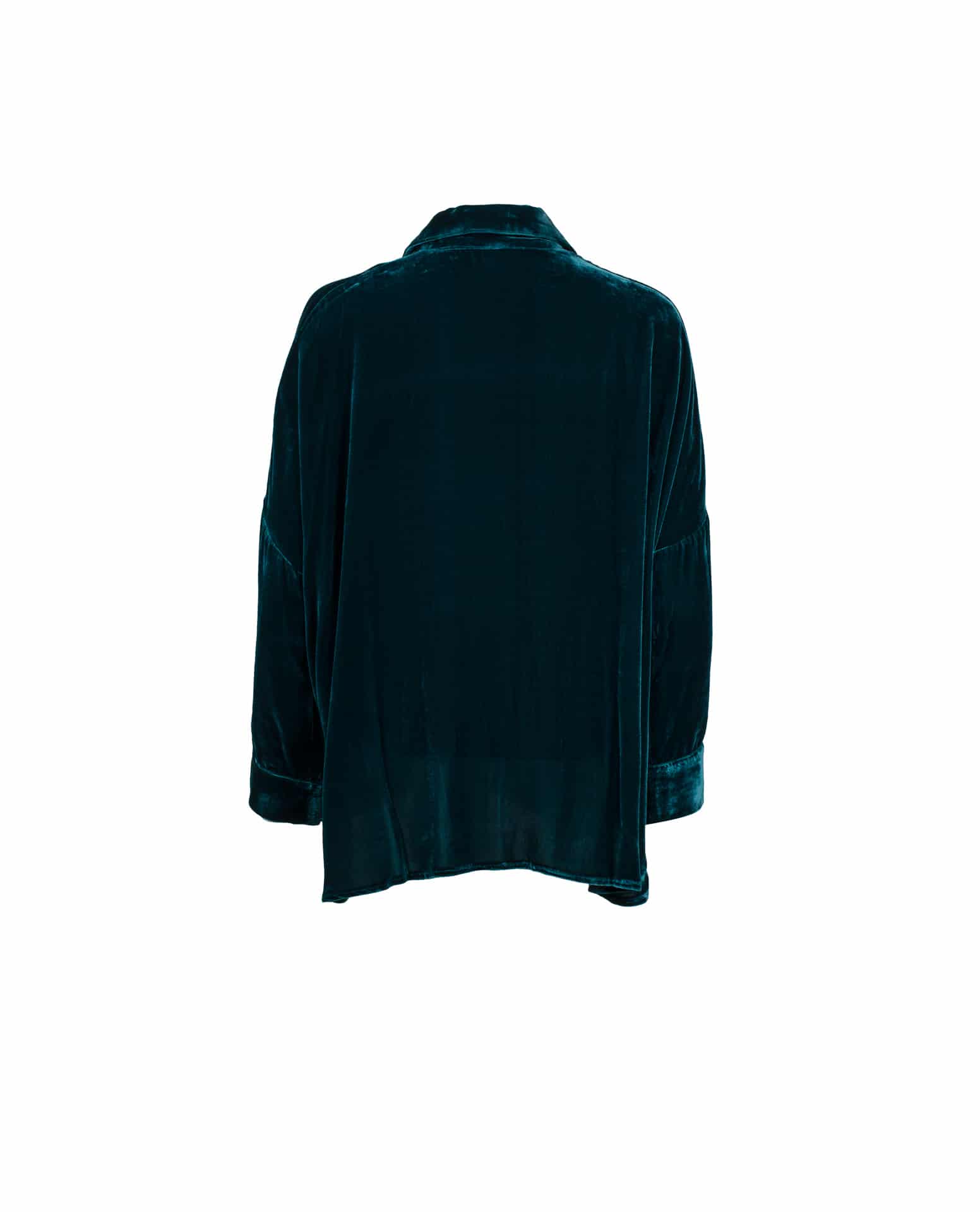 The Gaby shirt is cut like a classic button-down shirt and has a relaxed silhouette that expresses the paradox between masculine and feminine accents. Its clean, square design is shaped from velvet fabric that is soft on the skin. As a witness of its femininity, the rounded edges and side split softened the masculine cut.