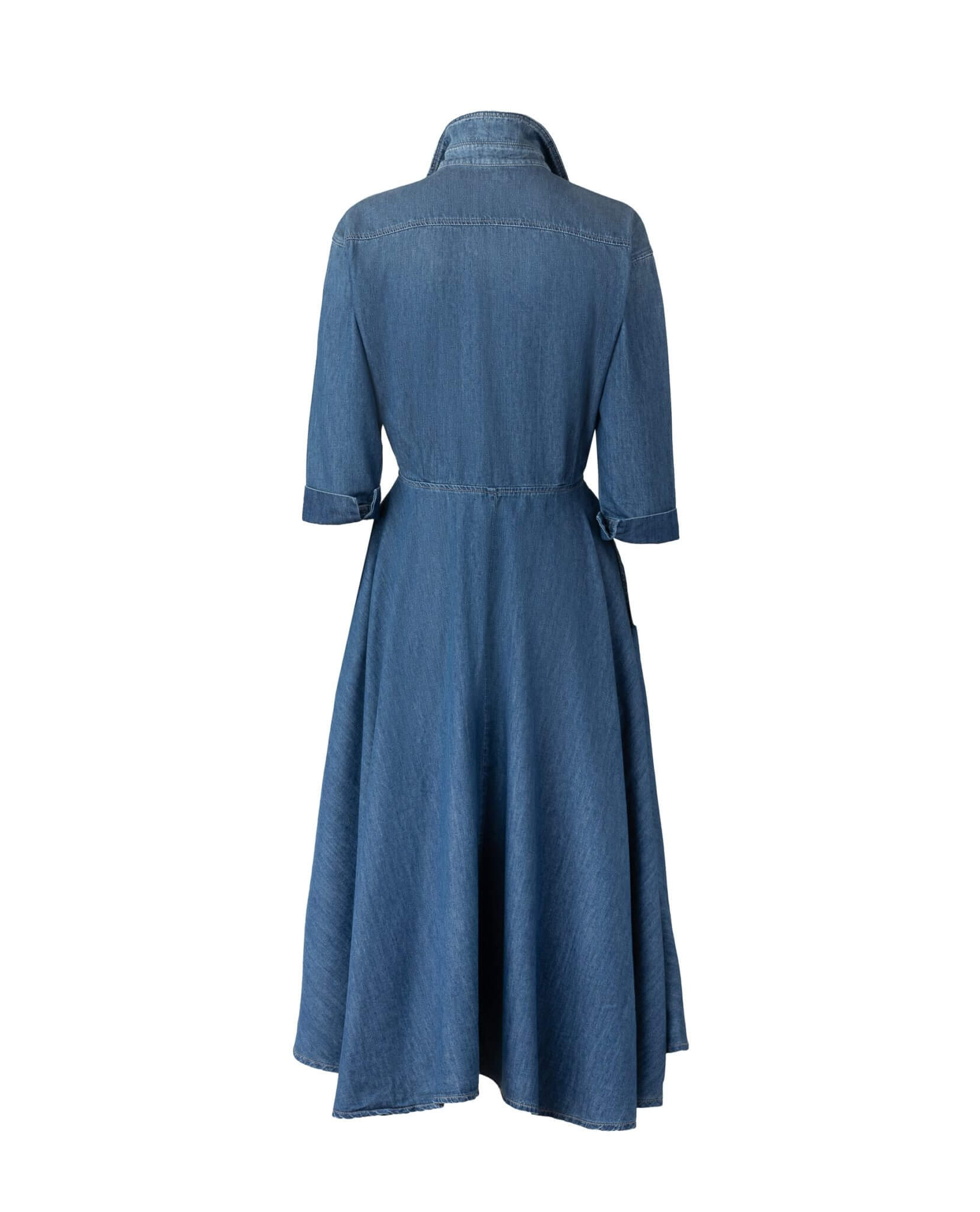The Marina shirt dress combines elegance and comfort. Inspired by the silhouette of Audrey Hepburn in the film “Roman Holidays.” This timeless dress model can be worn endlessly – for any occasion and every day. The skirt unfolds generously at the hips. Its length ends at the ankles: full-length buttoning, shirt collar, sleeves length ¾.