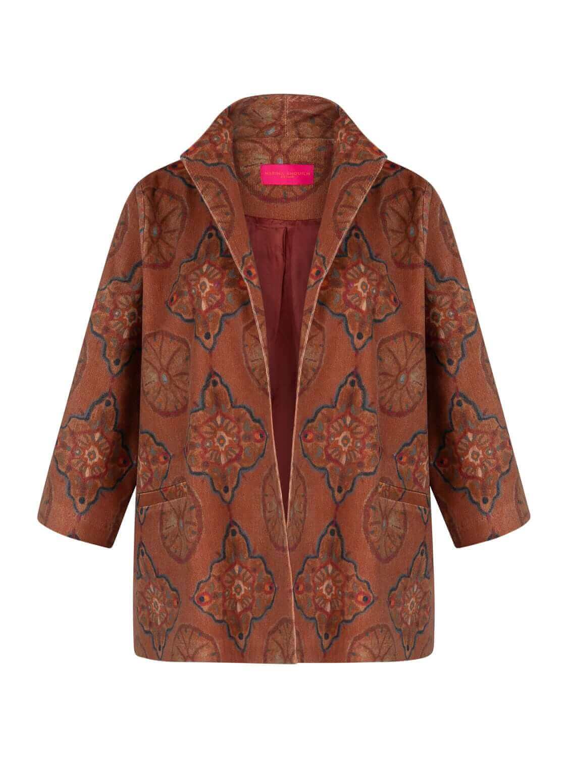 Exsclusive pattern by Natalia Dubuis the New Jazz Jacket’s Blueberry flattering A-line shape adds a minimal elegance to any daytime outfit.  Paired with a crisp white shirt and cropped white pants, this versatile piece will become a staple in your wardrobe. Three quarter length sleeves and two front flap pockets give this piece a practicality any woman can embrace.