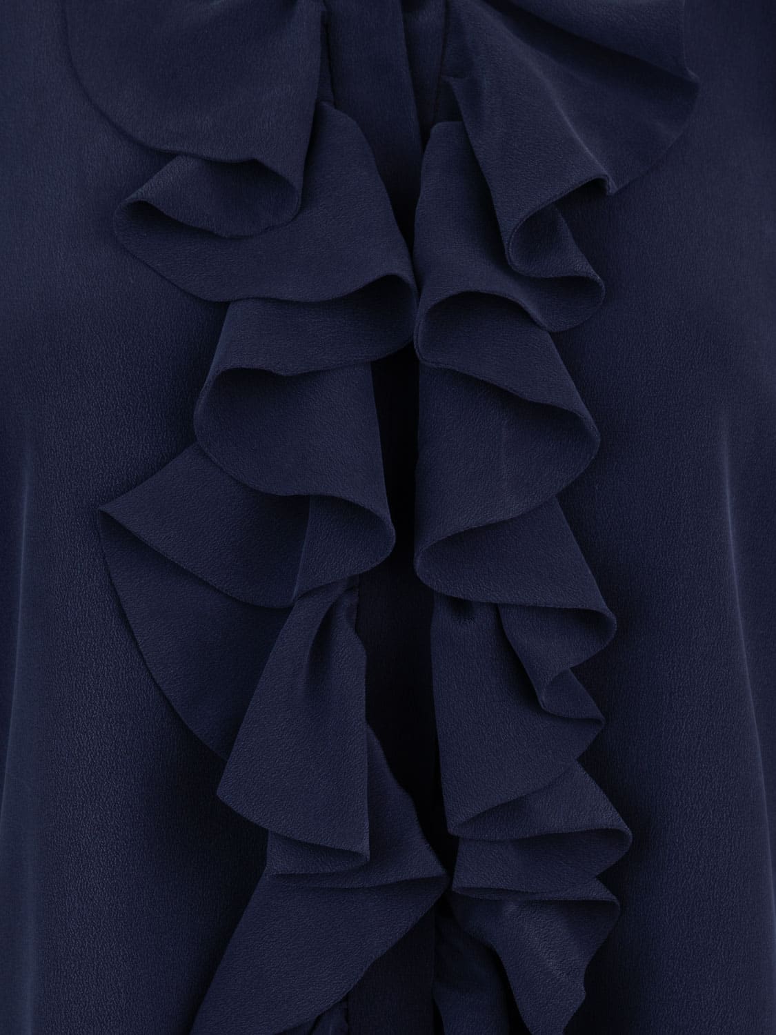 Select sizeThis elegant blouse is made from high-quality silk. With a regular fit, it is timeless and comfortable to wear. The blouse has front ruffles with beautiful flounce details, a concealed button placket and buttons at the cuffs.