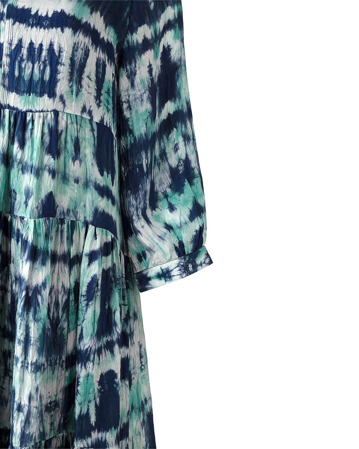 Select sizeA relaxed long sleeve voluminous dress, made of handloom silk tie-dye shibori fabric, extremely light and soft on the skin. The Shiu silk dress is the “perfect gypsy dress.” With three-quarter length sleeves and a collar, neckline bring a sense of simplicity to this feminine piece. It can easily transition from day to night by adding a colorful high-heeled sandal.