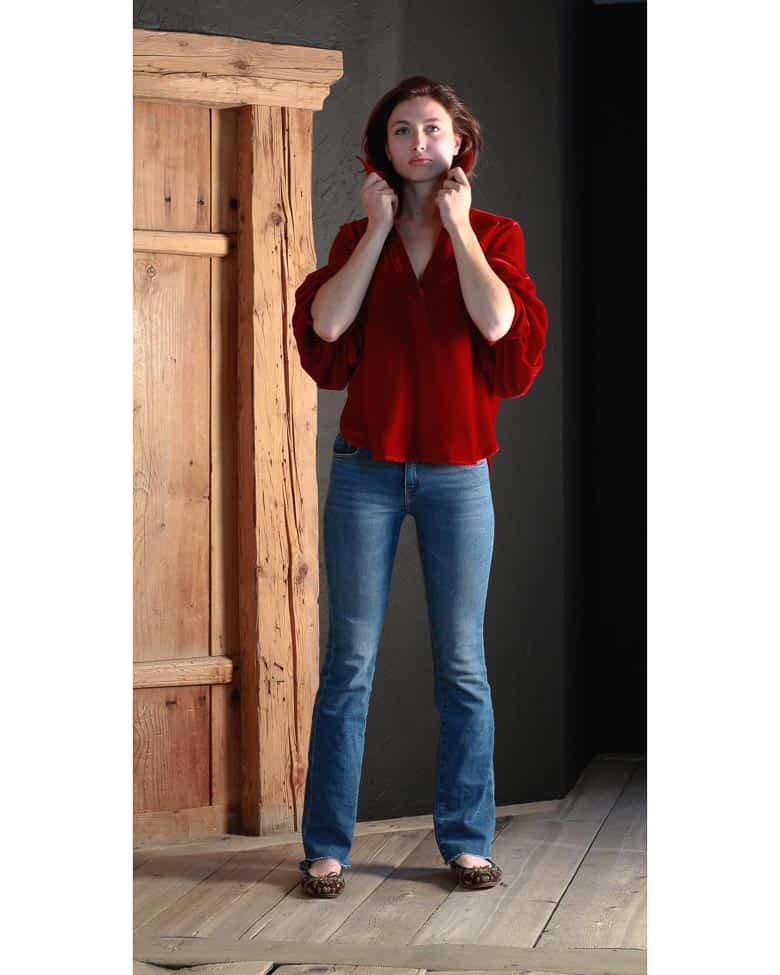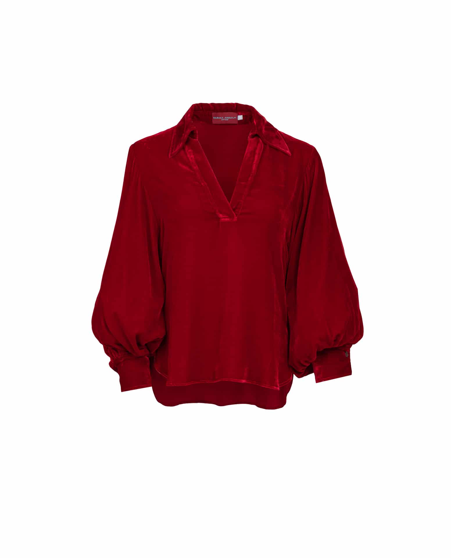 Velvet is a winter material « par excellence » and flatters all body shapes. With its straight cut and voluptuous sleeves, the Sophie model is an excellent example of it. The volumes contrast and offer the singular simplicity that we love.